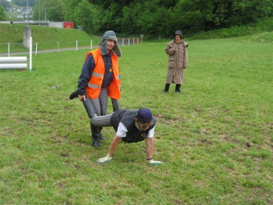 konnten alle den Patrouillenritt trocken beenden. Es warteten sechs spannende Stationen auf die Reiterpaare, wie z. B. Holz sägen, Reiterspiele, Bretter balancieren oder